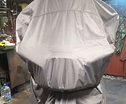 Транспортировочный чехол-тент из синтетической, ветро – и влагонепроницаемой ткани «ОКСФОРД»с пропиткой, эта ткань (более плотная и крепкая чем «таффета»), имеет увеличенный срок службы (более 5 лет). Чехол имеет ленты и карабины для надежной фиксации чехла при транспортировке. Его можно использовать как зимой так и летом, в гараже и на открытом воздухе. Чехол можно стирать на щадящем режиме без порошка, вес изделия около 2,5 кг, габариты в сложенном состоянии 40х20х20 см.